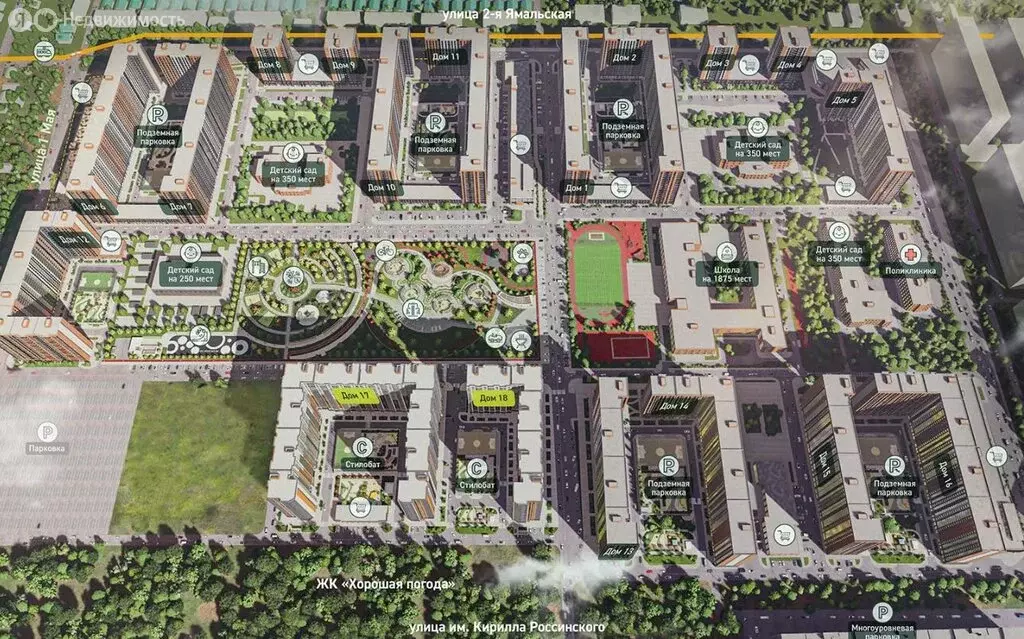 Жилой комплекс включает в себя 18 корпусов переменной этажности: от 18 до 21 этажей. Дом возводится по долговечной монолитной технологии с фасадами из керамического кирпича, с вставками декоративных элементов. В проекте выполнена дизайнерская отделка входных групп, установлены современные скоростные лифты. На первых этажах расположены закрытые боксы для хранения колясок и велосипедов. В жилом комплексе предложено множество планировочных решений: от квартир- студий до 2-х комнатных квартир в классических планировках. Сдаются юниты с подчистовой отделкой, панорамными окнами и высотой потолков до 2,94 метра.Парк «Флагманский площадью 42 000 масположен внутри микрорайона. Жилой комплекс оборудован детскими эко-городками, площадками для групповых занятий, кроссфита, воркаута, уличными тренажерами, велодорожками, памп-треками, футбольным полем, площадкой для выгула собак иамфитеатром для проведения мероприятий. На территории проекта ведётся круглосуточное видеонаблюдение, а также установлены «тревожные кнопки, в подъездах домов имеется консьерж-сервис и работает частное охранное предприятие. Коммерческие помещения располагаются на первых этажах. В проекте реализованы 4 детских сада и школа на 1 875 мест. Для удобства жителей обустроены парковочные зоны четырёх типов: наземные, подземные, крытые под стилобатом и многоуровневый паркинг.Проект расположен в районе Прикубанского округа. В шаговой доступности детские сады, школа, магазины, поликлиника, фитнесс-клубы, детские секции, развивающие центры, парк «Флагманский и торгово-развлекательный центр «Любимово . До центра города 20 минут транспортом. Жилой комплекс включает в себя 18 корпусов переменной этажности: от 18 до 21 этажей. Дом возводится по долговечной монолитной технологии с фасадами из керамического кирпича, с вставками декоративных элементов. В проекте выполнена дизайнерская отделка входных групп, установлены современные скоростные лифты. На первых этажах расположены закрытые боксы для хранения колясок и велосипедов. Отделка предчистовая, панорамные окна, высота потолков до 2,94 метраПарк «Флагманский площадью 42 000 масположен внутри микрорайона. Жилой комплекс оборудован детскими эко-городками, площадками для групповых занятий, кроссфита, воркаута, уличными тренажерами, велодорожками, памп-треками, футбольным полем, площадкой для выгула собак иамфитеатром для проведения мероприятий. На территории проекта ведётся круглосуточное видеонаблюдение, а также установлены «тревожные кнопки, в подъездах домов имеется консьерж-сервис и работает частное охранное предприятие. Коммерческие помещения располагаются на первых этажах. В проекте реализованы 4 детских сада и школа на 1 875 мест. Для удобства жителей обустроены парковочные зоны четырёх типов: наземные, подземные, крытые под стилобатом и многоуровневый паркинг.Проект расположен в районе Прикубанского округа. В шаговой доступности детские сады, школа, магазины, поликлиника, фитнесс-клубы, детские секции, развивающие центры, парк «Флагманский и торгово-развлекательный центр «Любимово . До центра города 20 минут транспортом. Номер в базе: 1266